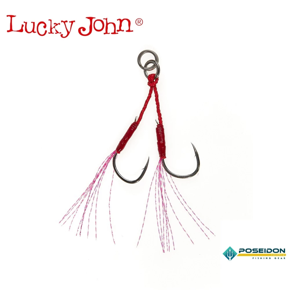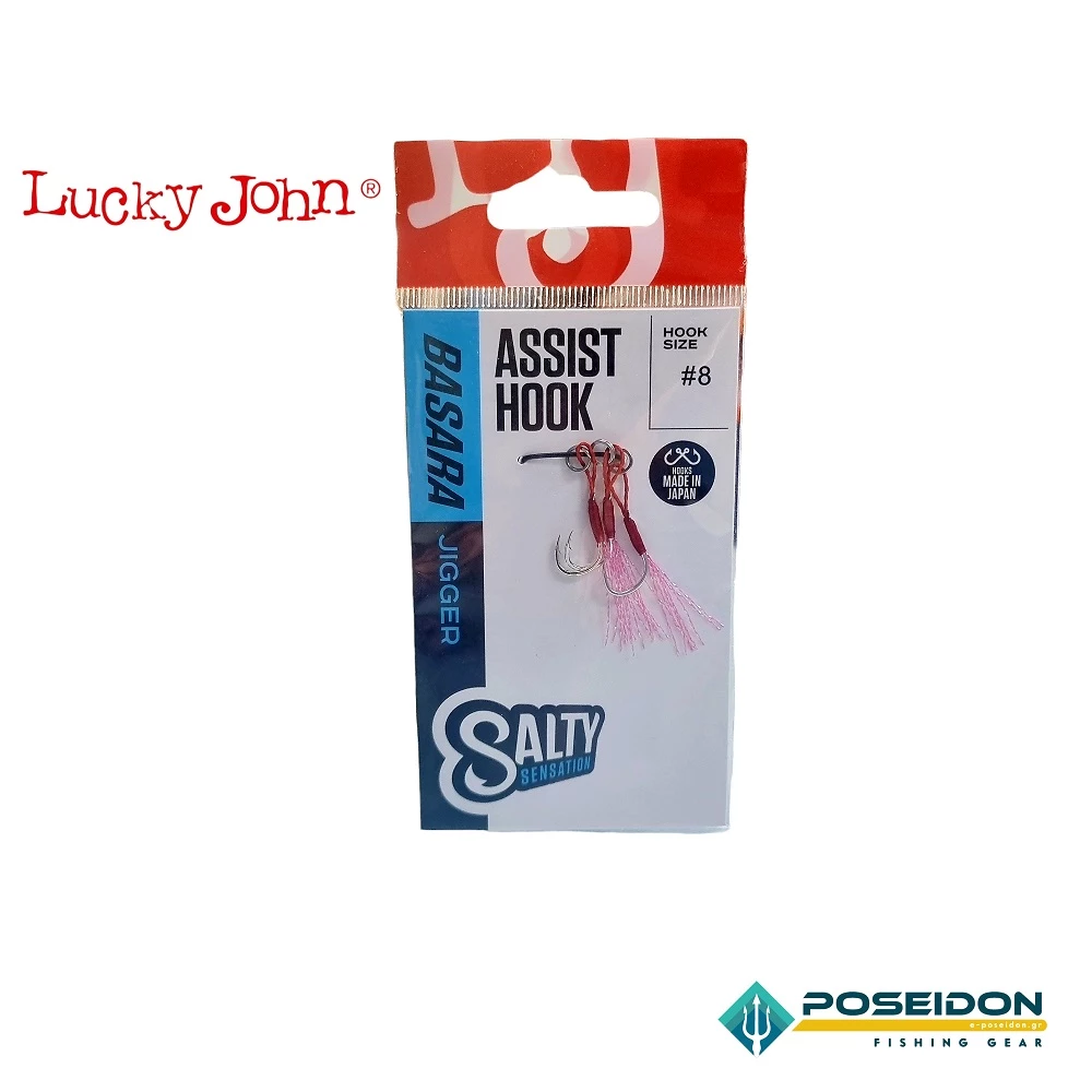 Είναι κατασκευασμένα από ποιοτικά υλικά ενώ τα αγκίστρια εχουν ως χαρακτηριστικά την δύναμη, την αιχμηρότητα, την αντοχή τους στο θαλασσινό νερό αλλά και το πολύ μικρό τους βάρος, άλλωστε προέρχονται από την Ιαπωνία. Έχουν τοποθετηθεί τρέσες που αντανακλούν στον ήλιο γεγονός που έχει παρατηρηθεί οτι προσελκύει τα διάφορα αρπακτικά, όπως κοκκάλια και διάφορα τονοειδή.Το σχήμα του αγκιστριού μας εγγυάται το σίγουρο κάρφωμα αλλά και το θετικό αποτέλεσμα σε μία μάχη με έναν αξιόλογο αντίπαλο. Συγκριτικά με μία σαλαγκιά τα Assist Hooks της Lucky John μας δίνουν μεγαλύτερη εμπιστοσύνη στην μάχη.