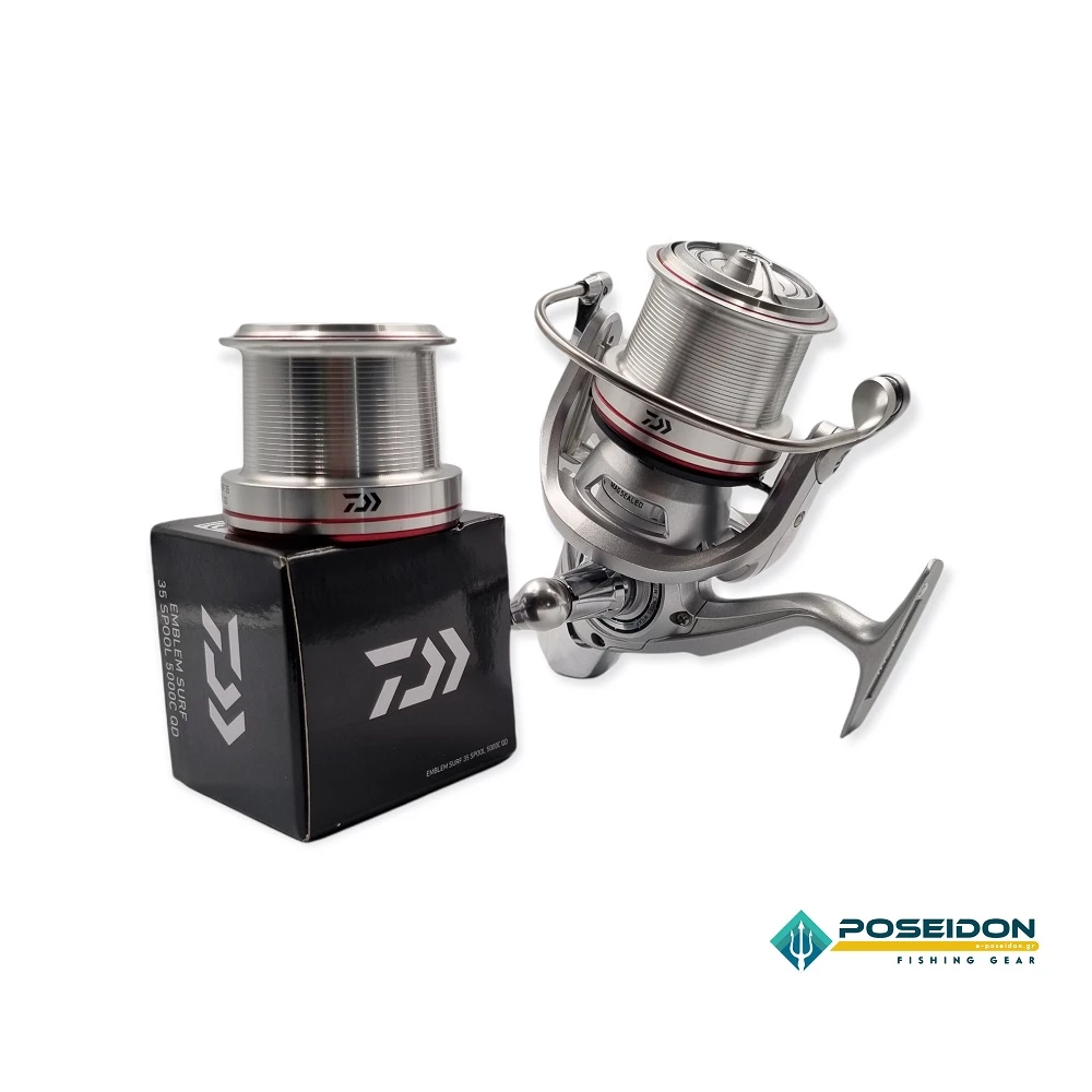 DAIWA EMBLEM SCWQD35 . Με τεχνολογία DOUBLE OSCILLATION SLOW CROSS WRAP , μανιβέλα αλουμινίου , 6 +1 ρουλεμάν , σώμα και ρότορας από υλικό CARBON , 2 μπομπίνες αλουμινίου και γρήγορο σύστημα φρένων QUICK DRAG .