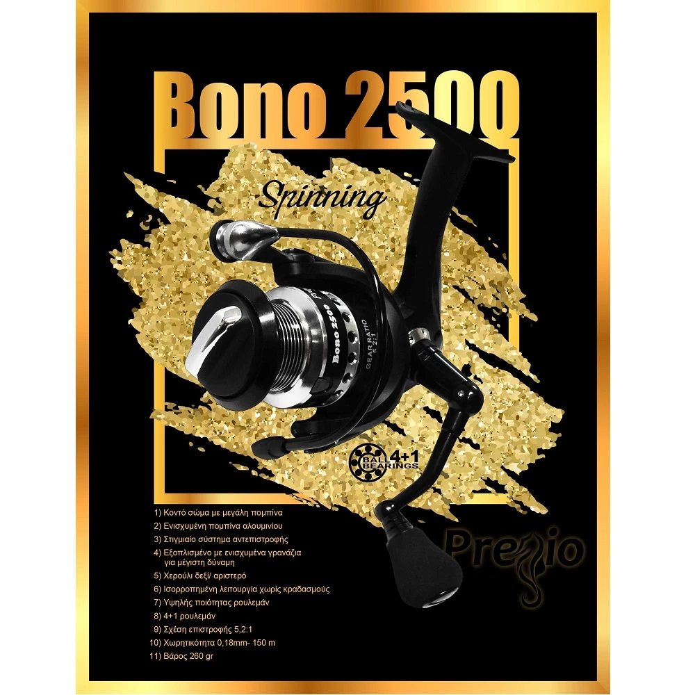 Ο Bono 2500 μηχανισμός της Pregio είναι εδώ για να συνδυάσει ένα πολύ βασικό μέγεθος μηχανισμού με πολλά πλεονεκτήματα και βασικά χαρακτηριστικά! Σε μέγεθος 2500 καταφέρνει να ανταποκριθεί τόσο σε τεχνικά ψαρέματα, όσο και σε πιο σκληρά χωρίς να φοβάται τίποτα.
