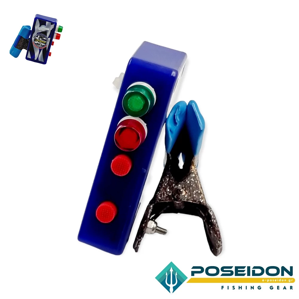 Οπτικός ειδοποιητής COBRA 1 Optic Fishing Alarm με δύο LED και δύο διακόπτες . Ο ένας διακόπτης είναι για την ενεργοποίηση ή απενεργοποίηση του ήχου και ο δεύτερος για την ενεργοποίηση ή απενεργοποίηση των LED. Το κόκκινο LED είναι η προειδοποίηση (ότι έχει πάρει τσιμπιά) και το πράσινο LED ανάβει στο ”STRIKE” !